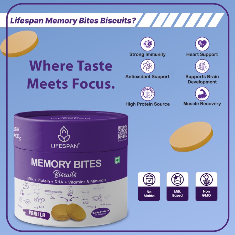 Lifespan Memory Protein Biscuits snacking with purpose, powered by protein and nature’s brain-boosting ingredients.
